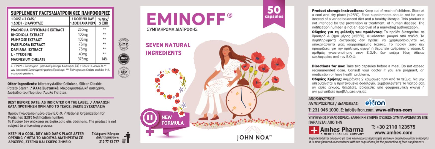 Με ισχυρά συστατικά όπως το εκχύλισμα κόκκινου τριφυλλιού, βιταμίνη B6 και λυγαριά, το EMINOFF βοηθά στη φυσική αντιμετώπιση των αλλαγών που συνοδεύουν την εμμηνόπαυση, χωρίς ορμόνες ή φαρμακευτικές ουσίες.